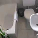 Koupelna má samostatnou toaletu, vanu a sprchu, zatímco pokoj má pohovku, psací stůl, přístroj na přípravu kávy a čaje.